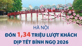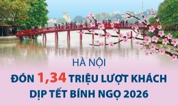 Hà Nội đón 1,34 triệu lượt khách du lịch dịp Tết Bính Ngọ 2026Theo Sở Du Lịch Hà Nội, trong 9 ngày nghỉ Tết Nguyên đán Bính Ngọ 2026 (từ 14 đến 22/2/2026, tức 27 tháng Chạp đến mùng 6 tháng Giêng), Thủ đô Hà Nội ước đón khoảng 1,34 triệu lượt khách du lịch, tăng 36,3% so với cùng kỳ năm 2025. -