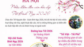 Nhiều điểm đến văn hóa dịp Tết Bính Ngọ 2026 tại Hà NộiChào đón Tết Nguyên đán - Xuân Bính Ngọ 2026, thủ đô Hà Nội tổ chức nhiều hoạt động văn hóa, nghệ thuật đặc sắc, mở ra những không gian và điểm đến du Xuân hấp dẫn cho du khách trong và ngoài nước. -