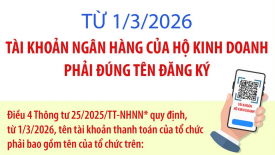 Từ 1/3/2026: Tài khoản ngân hàng của hộ kinh doanh phải đúng tên đăng kýTheo quy định Điều 4 Thông tư 25/2025/TT-NHNN, từ 1/3/2025, tên tài khoản thanh toán của tổ chức phải bao gồm tên của tổ chức trên giấy phép thành lập, quyết định thành lập hoặc giấy chứng nhận đăng ký doanh nghiệp hoặc giấy tờ chứng minh tổ chức được thành lập, hoạt động hợp pháp.