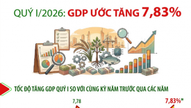 GDP ước tăng 7,83% trong quý I/2026Tổng sản phẩm trong nước (GDP) quý I/2026 ước tăng 7,83% so với cùng kỳ năm trước (quý I/2025 tăng 7,07%). Bắt đầu từ quý I/2026, tổng sản phẩm trong nước theo giá so sánh được tính theo năm gốc 2020. -