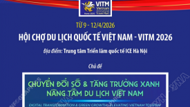 Chuyển đổi số và tăng trưởng xanh - Nâng tầm du lịch Việt NamDiễn ra thường niên tại Hà Nội, Hội chợ Du lịch quốc tế Việt Nam (VITM) không chỉ là hoạt động kích cầu du lịch Việt Nam mà còn là dịp tạo đà tăng trưởng cho du lịch Thủ đô. VITM 2026 diễn ra từ ngày 9 đến 12/4/2026 tại Trung tâm Triển lãm quốc tế ICE Hà Nội, với chủ đề “Chuyển đổi số và tăng trưởng xanh - Nâng tầm du lịch Việt Nam”. -