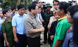 Thủ tướng thăm, động viên người dân vùng “rốn lũ” xã Hòa Thịnh, tỉnh Đắk Lắk -