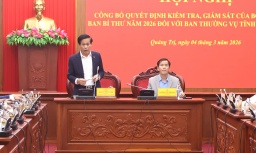 Công bố quyết định kiểm tra, giám sát đối với Ban Thường vụ Tỉnh ủy Quảng Trị