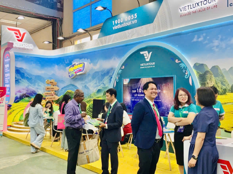Gian hàng cũng đóng vai trò là điểm kết nối chiến lược giữa doanh nghiệp với đối tác quốc tế. Các cuộc gặp gỡ B2B diễn ra liên tục với đại diện từ châu Âu, châu Á, Úc và Mỹ, song song với việc tiếp đón khách hàng cá nhân trong và ngoài nước. Đây là cách Vietluxtour tận dụng hiệu quả nền tảng hội chợ để mở rộng thị trường, đồng thời khẳng định năng lực đón khách quốc tế chuyên nghiệp.
