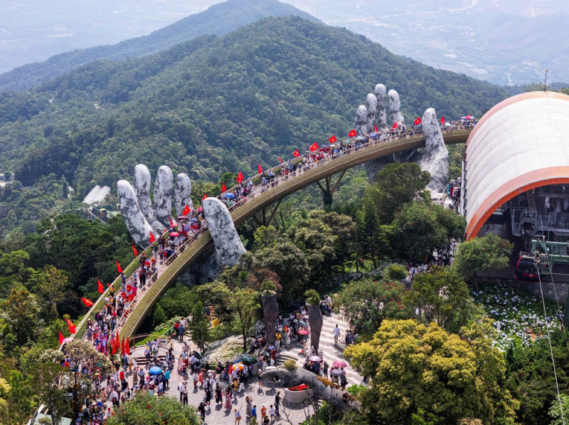 | Khung cảnh rực rỡ của Cầu Vàng khiến đông đảo du khách thích thú, hào hứng check in. |