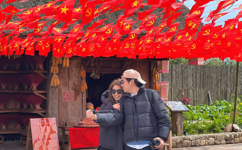 | Bản Mây những ngày này thêm phần rực rỡ, xinh đẹp hơn với cờ hoa ngợp trời. Nhiều du khách trong nước và quốc tế đến với các khu du lịch trong dịp này bày tỏ niềm thích thú và hào hứng check in với không gian rực rỡ cờ hoa và những tấm pano, khẩu hiệu đầy ý nghĩa và ấn tượng. |