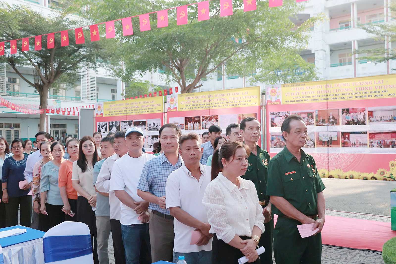 Ghi nhận cho thấy, từ sáng sớm đã có hàng trăm cử tri đến xếp hàng chờ bỏ phiếu bầu đại biểu Quốc hội khóa XVI và đại biểu HĐND các cấp nhiệm kỳ 2026 - 2031.