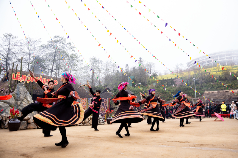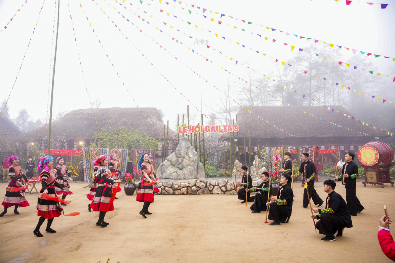 Lễ hội Gàu Tào của người Mông (từ mùng 3 đến mùng 5 Tết) mở màn cho chuỗi hội hè với nghi thức dựng cây nêu độc đáo và các bài cúng khấn trang nghiêm cầu cho mùa màng bội thu.