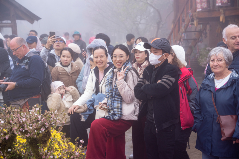 Mặc dù sáng sớm trời có mưa bụi và mây mù, nhưng không khí lễ hội vẫn rất tưng bừng, thu hút đông đảo du khách bốn phương. Những nụ cười rạng rỡ, bầu không khí náo nhiệt tại Bản Mây đã tạo nên một khởi đầu năm mới Bính Ngọ đầy năng lượng và hứng khởi tại Sun World Fansipan Legend.