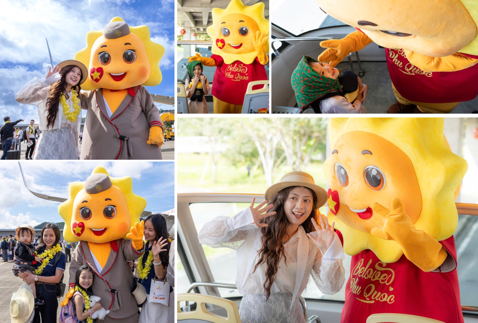Những chuyến xe bus trang hoàng rực rỡ mang sắc vàng Mặt Trời chờ sẵn ngoài sân bay. Hành khách lên xe, tiếng nhạc sôi động vang lên. Qua khung cửa kính, đảo Ngọc hiện dần, tươi mới, rực rỡ như chính tên gọi của hãng hàng không vừa đưa họ đến đây.