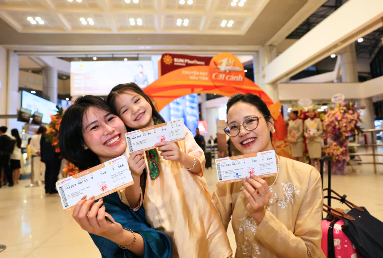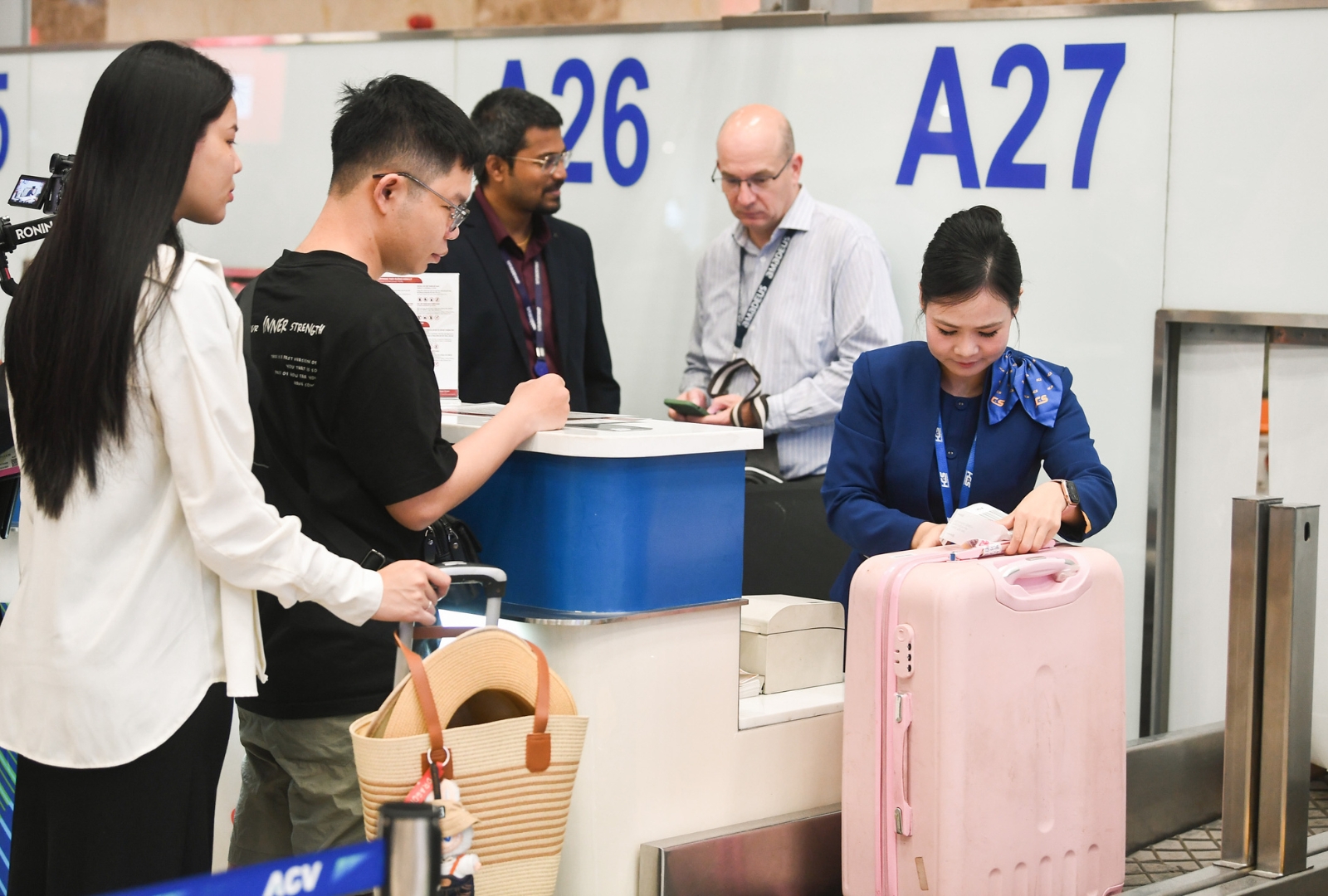 Ở quầy làm thủ tục, nụ cười hiện rõ trên khuôn mặt mỗi hành khách. Tấm vé có dấu “1st flight” trên tay họ không chỉ là giấy lên máy bay, mà là kỷ niệm. Một em bé gái, một thiếu nữ chụp ảnh lưu niệm, một vị khách lớn tuổi cẩn thận giữ tấm vé trong ví, như giữ lấy một phần của lịch sử hàng không Việt Nam vừa được mở ra.