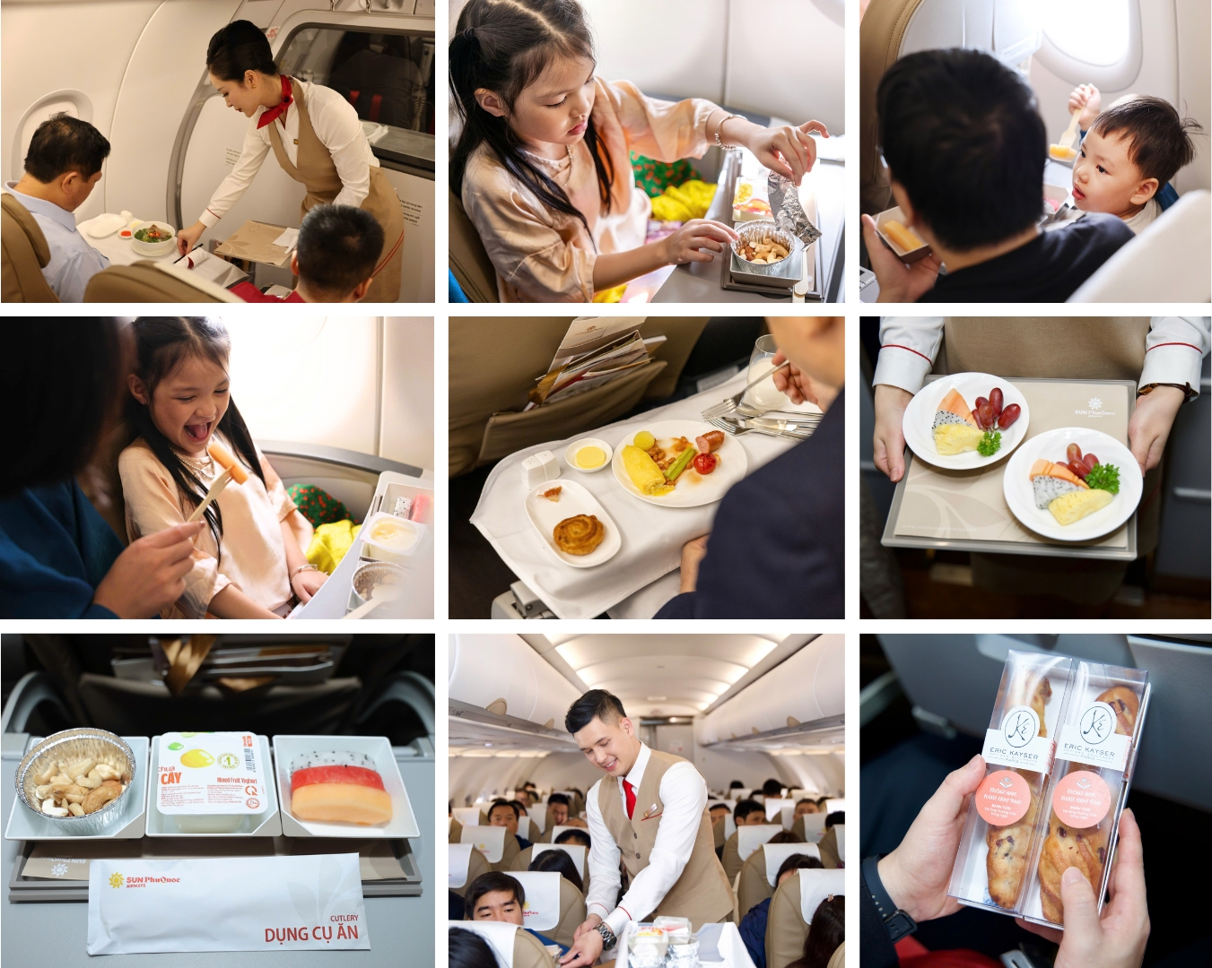 Trên khay phục vụ, những món ăn ngon như phở, sữa chua ngũ cốc, trái cây tươi… tỏa hương ấm áp. Một hành khách lặng nhìn qua khung cửa sổ, nơi mây trắng trôi bồng bềnh, nhấp một ngụm cà phê và mỉm cười. Có lẽ, đây là lần đầu tiên họ cảm thấy rằng… bay cũng có thể là tận hưởng.