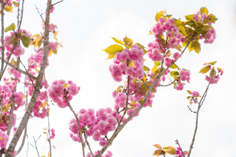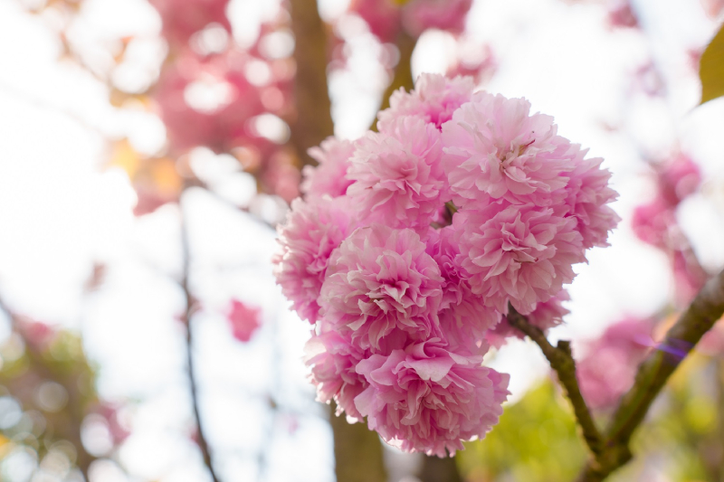 Không giống những loài hoa “sớm nở tối tàn”, hoa Anh đào nơi đây có sức sống bền bỉ hiếm có, giữ sắc tươi rói suốt cả tháng trời nhờ lớp cánh kép dày dặn.