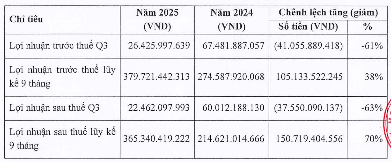 Lợi nhuận Samland giảm 76,4% trong quý III/2025, về 213,89 triệu đồng -