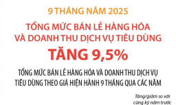 Tổng mức bán lẻ hàng hóa và doanh thu dịch vụ tiêu dùng tăng 9,5% sau 9 tháng năm 2025