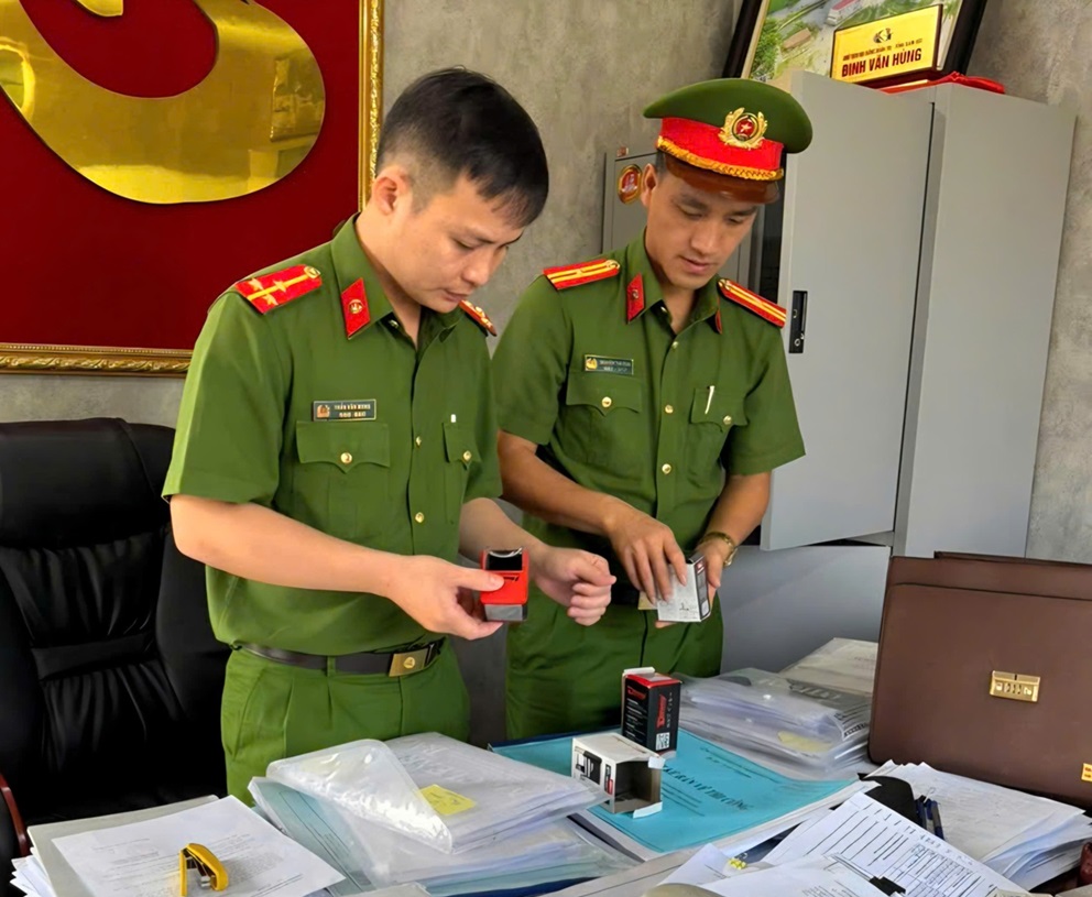 | Lực lượng Công an thành phố Đà Nẵng kiểm tra hồ sơ, tài liệu tại Công ty Phong Hải Thịnh. |