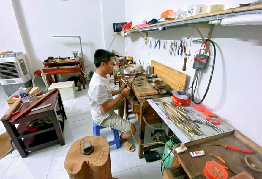 Khám xét khẩn cấp nơi ở và phương tiện của các đối tượng, cơ quan công an thu giữ 4 miếng vàng thô, 22 sợi dây chuyền vàng có tổng trọng lượng 65 cây, trị giá gần 9 tỷ đồng, cùng nhiều thiết bị, máy móc dùng để chế tác vàng giả.