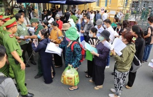 | Chủ tịch Quốc hội Việt Nam Trần Thanh Mẫn, Chủ tịch Quốc hội Lào Saysomphone Phomvihane, Phó chủ tịch kiêm Tổng giám đốc BIM Group Đoàn Quốc Huy cắt băng khánh thành khách sạn Holiday Inn & Suites Vientiane. |