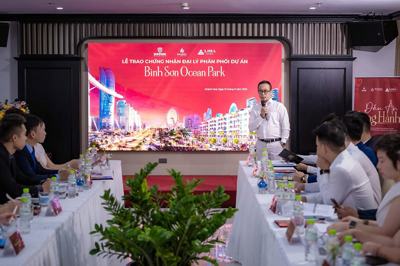 Tại sự kiện, đại diện chủ đầu tư ông Trần Ngọc Thật - Phó Giám đốc Hacom Holdings CN Ninh Thuận, cùng đại diện Limahomes đã trao chứng nhận cho các đơn vị phân phối chính thức. Khoảnh khắc các đối tác bước lên sân khấu không chỉ là sự ghi nhận, mà còn là minh chứng cho cam kết đồng hành mạnh mẽ trên chặng đường phát triển dự án.