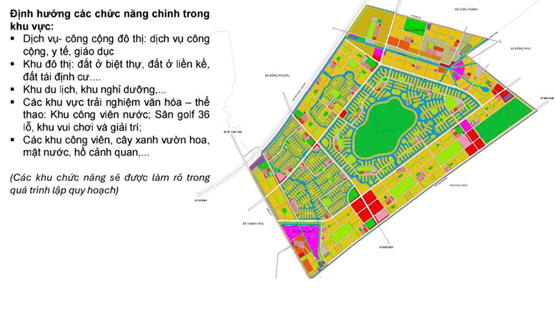 | Dự kiến các chức năng chính trong khu vực quy hoạch Khu đô thị du lịch nghỉ dưỡng Mekong |