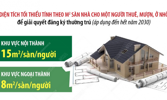 Hà Nội quy định về diện tích nhà ở tối thiểu để được giải quyết đăng ký thường trú tại chỗ ở hợp pháp do thuê, mượn, ở nhờ áp dụng trên địa bàn thành phố đến hết năm 2030 là 8 m2/sàn/người đối với khu vực ngoại thành và 15 m2/sàn/người đối với khu vực nội thành.