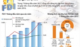 Gần 22 tỷ USD vốn FDI vào Việt Nam, Hàn Quốc lại đứng đầu7 tháng đầu năm 2017, gần 22 tỷ USD vốn đầu tư nước ngoài đã được đăng ký vào Việt Nam, tăng 52% so với cùng kỳ. Trong đó, riêng đầu tư qua góp vốn, mua cổ phần đạt 3,12 tỷ USD, tăng 109,7% so cùng kỳ năm ngoái. -