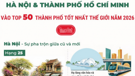 Hà Nội và TP.HCM vào Top 50 thành phố tốt nhất thế giới 2026Tạp chí Time Out (Anh) công bố danh sách 50 thành phố tốt nhất thế giới năm 2026 (Best Cities 2026) - những nơi được đánh giá là "thú vị nhất để sống và khám phá". -