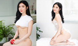 Vợ Tuấn Hưng kỷ niệm tuổi mới bằng bộ ảnh không nội yThu Hương diện vest khoét sâu cổ hoặc áo yếm trễ nải, khoe vòng một đầy đặn, trong bộ ảnh mừng tuổi 27. -