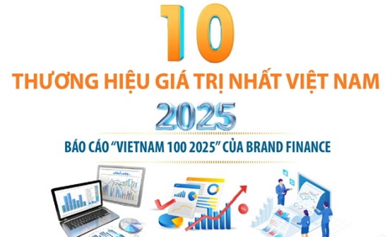 Báo cáo “Vietnam 100 2025” của Brand Finance cho biết tổng giá trị thương hiệu của 100 thương hiệu hàng đầu Việt Nam năm 2025 đạt 38,4 tỷ USD. Các thương hiệu hàng đầu Việt Nam vượt qua thách thức kinh tế nhờ chuyển đổi số và tăng trưởng ngành. 10 thương hiệu giá trị hàng đầu năm 2025 gồm có: Viettel Group, Vinamilk, Vietcombank, Vietinbank, Techcombank, BIDV, Vinhomes, MBBank, Agribank và FPT.