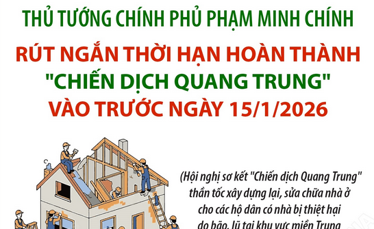 Tại Hội nghị sơ kết "Chiến dịch Quang Trung" thần tốc xây dựng lại, sửa chữa nhà ở cho các hộ dân có nhà bị thiệt hại do bão, lũ tại khu vực miền Trung, Thủ tướng Chính phủ yêu cầu phấn đấu hoàn thành toàn bộ việc xây dựng lại nhà ở cho nhân dân trước ngày 15/1/2026 (rút ngắn 15 ngày so với kế hoạch ban đầu) để chào mừng Đại hội đại biểu toàn quốc lần thứ XIV của Đảng.