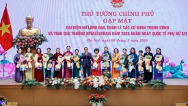 Phụ nữ Việt Nam là lực lượng nòng cốt, nhân tố kiến tạo tiến trình đổi mới và phát triểnNgày 6/3, tại trụ sở Chính phủ, Thủ tướng Phạm Minh Chính gặp mặt nữ lãnh đạo, quản lý các cơ quan Trung ương và trao giải thưởng Kovalevskaia năm 2025. -