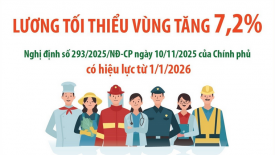 Từ ngày 1/1/2026, lương tối thiểu vùng I tăng 350.000 đồng/tháng, vùng II tăng 320.000 đồng/tháng, vùng III tăng 280.000 đồng/tháng và vùng IV tăng 250.000 đồng/tháng.