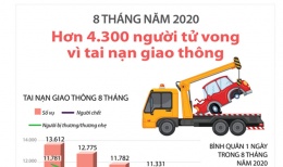 Hơn 4.300 người tử vong vì tai nạn giao thông trong 8 tháng đầu nămChiều 25/8, Ủy ban An toàn giao thông quốc gia đã công bố báo cáo tổng hợp tình hình tai nạn giao thông tháng 8 và 8 tháng năm 2020. -