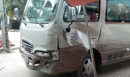 Thấy xe khách để bên đường thị trấn Chũ (Lục Ngạn, Bắc Giang), bé trai 13 tuổi bị bệnh tâm thần mở cửa, trèo lên lái khiến xe đâm vào ôtô 7 chỗ và bé gái đi xe đạp.