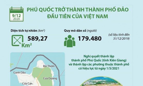 Chiều 9/12/2020, Ủy ban Thường vụ Quốc hội đã thông qua Nghị quyết thành lập thành phố Phú Quốc và thành lập các phường thuộc thành phố Phú Quốc, tỉnh Kiên Giang. Nghị quyết có hiệu lực từ ngày 1/3/2021.
