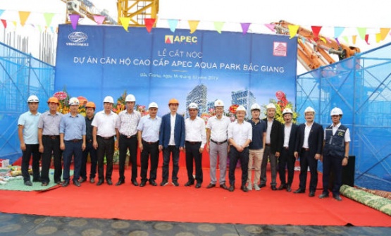 Sáng 16/10/2019, chủ đầu tư Apec Group cùng các đơn vị thầu, thi công cùng làm lễ cất nóc dự án Apec Aqua Park Bắc Giang. Dự án căn hộ chung cư cao cấp, cao 29 tầng, vượt tiến độ thi công 3 tháng và dự kiến sẽ bàn giao sớm cho khách hàng trong năm 2020.
