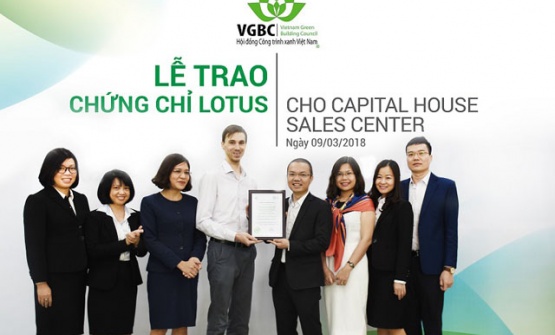 Sáng 9/3, Hội đồng Công trình xanh Việt Nam đã chính thức trao chứng chỉ xanh LOTUS cho dự án Capital House Sales Center - sàn giao dịch bất động sản của Tập đoàn Capital House đặt tại tầng 3, tòa A3, EcoLife Capitol với diện tích gần 400 m2.