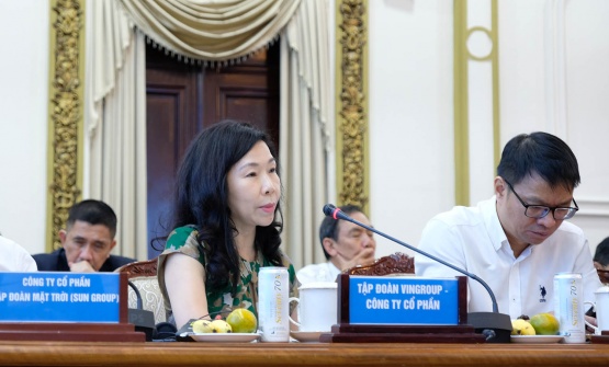 Bà Cao Thị Hà An, Giám đốc phát triển dự án Tập đoàn Vingroup kiến nghị lãnh đạo TP.HCM đẩy nhanh các thủ tục để khởi công dự án Khu đô thị lấn biển Cần Giờ vào dịp 30/4 sắp tới.