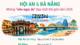 Hội An và Đà Nẵng - Những "viên ngọc ẩn" đẹp nhất thế giới năm 2026Việt Nam tiếp tục ghi dấu ấn trên bản đồ du lịch toàn cầu khi phố cổ Hội An được xếp vị trí cao nhất trong danh sách những “viên ngọc ẩn” đẹp nhất thế giới của tạp chí du lịch nổi tiếng Travel+Leisure. -