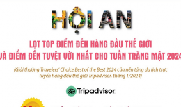 Huế đứng thứ 8 trong danh sách 25 điểm đến văn hóa hàng đầu thế giới 2024Giải thưởng Travelers’ Choice Best of the Best Destinations (Điểm đến tốt nhất trong số những điểm đến tốt nhất do du khách bình chọn) của Tripadvisor đã vinh danh Huế ở vị trí thứ 8 trong số 25 Điểm đến văn hóa hàng đầu thế giới 2024. -