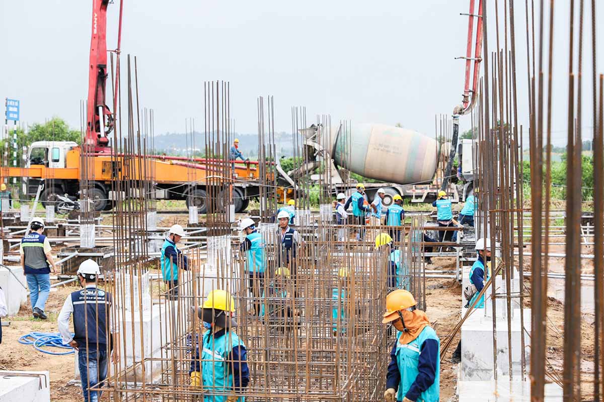 Dự án đang đồng loạt thi công hoàn thiện hạ tầng, cảnh quan và nhà ở tại nhiều phân khu như River Park 2, Ever Green 2 và Đảo Phượng Hoàng. Hàng nghìn công nhân làm việc xuyên đêm, đảm bảo tiến độ và chất lượng công trình.