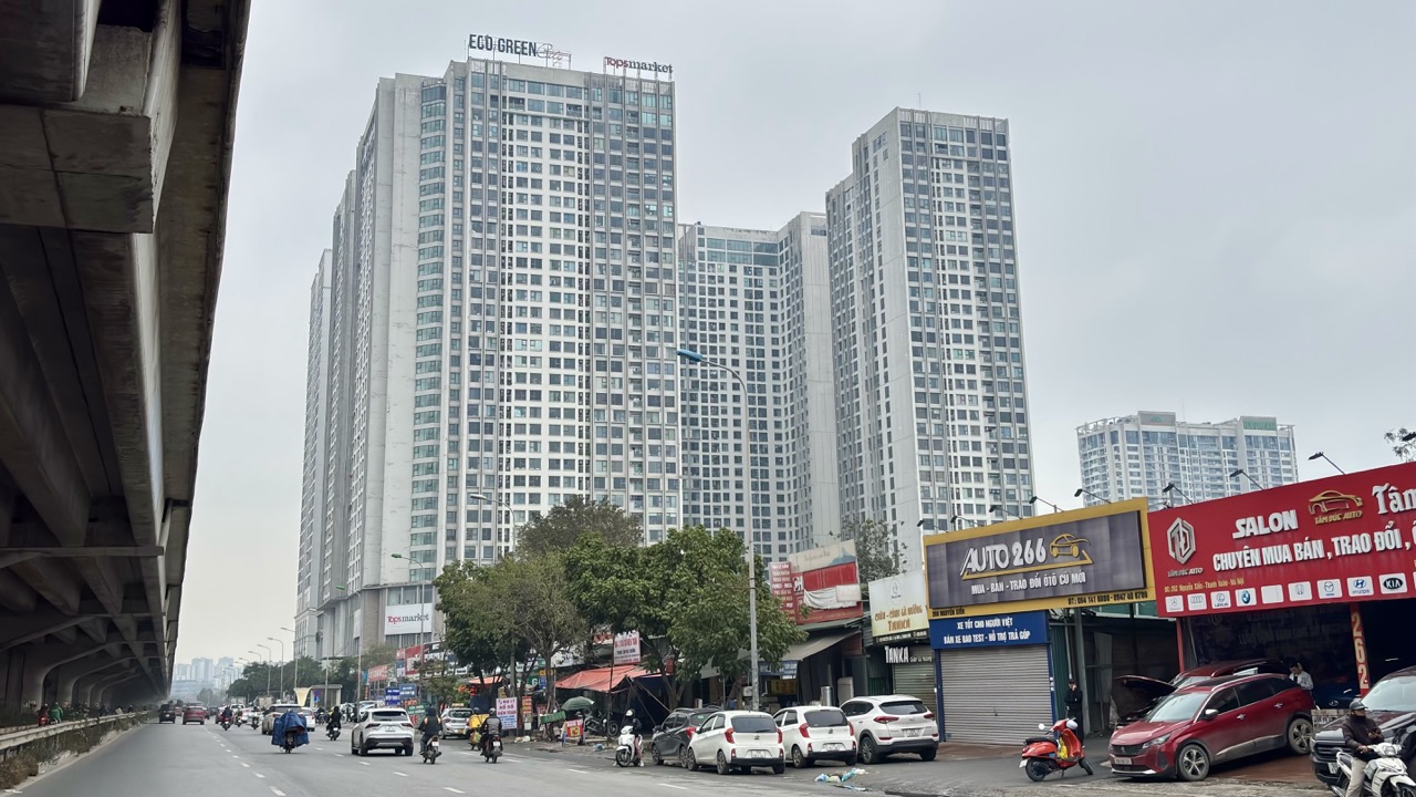 | Cách ô đất nhà ở xã hội CT6B không xa là chung cư Eco Green City. Đây là tòa chung cư thương mại đã được khởi công cách đây hơn một thập kỷ. Hiện các căn hộ cũ tại đây đang được rao bán với giá hơn 80 triệu đồng/m2. |