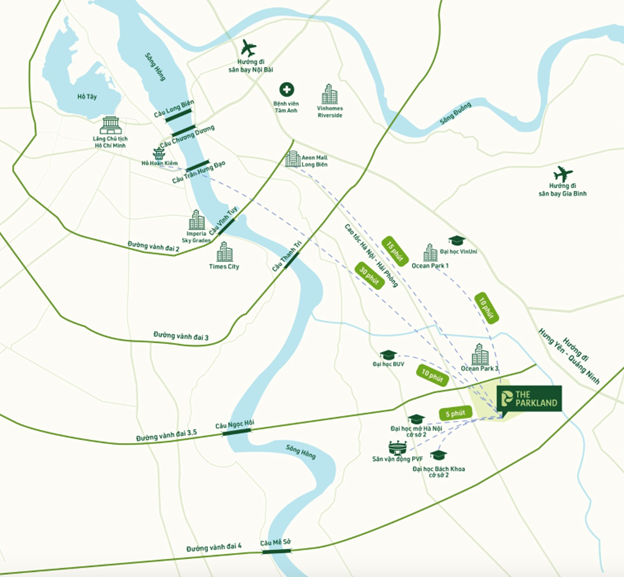 | The Parkland nằm ở vị trí trong vùng dịch chuyển hạ tầng chiến lược về phía Đông Hà Nội |