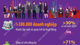 Kinh tế tư nhân đóng góp quan trọng vào tăng trưởng kinh tếTính chung cả năm 2025, có hơn 300.000 doanh nghiệp thành lập mới và quay trở lại hoạt động (tăng trên 30%), tổng số vốn đăng ký đạt trên 6 triệu tỷ đồng (tăng trên 71% so với năm 2024). -