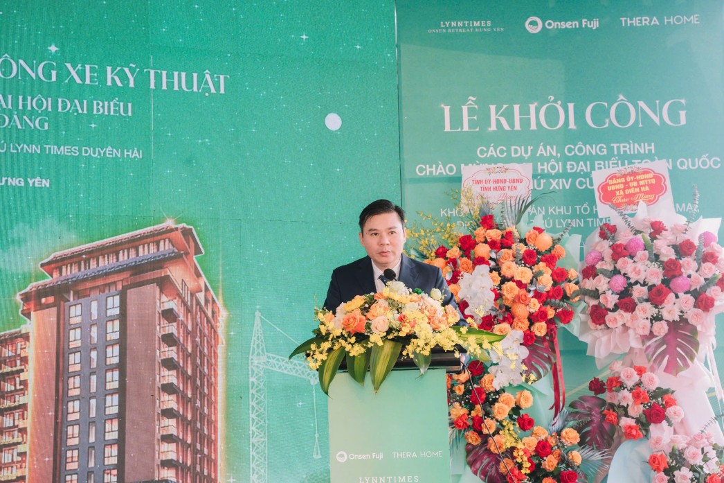 Chia sẻ tại buổi lễ, ông Phạm Công Khanh - Tổng giám đốc Cổ phần Tập đoàn Onsen Fuji chia sẻ: “Lynn Times Onsen Retreat Hưng Yên là một trong những dự án trọng điểm, được Tập đoàn dành nhiều tâm huyết đầu tư, giữ vai trò then chốt trong chiến lược phát triển bất động sản trị liệu gắn với tài nguyên khoáng nóng. Chúng tôi cam kết triển khai dự án đúng tiến độ, bảo đảm các tiêu chuẩn về chất lượng và an toàn; qua đó đóng góp tích cực vào phát triển hạ tầng, du lịch và dịch vụ địa phương, tạo việc làm, gia tăng nguồn thu ngân sách và mang lại giá trị bền vững cho cộng đồng”.