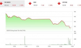 Phiên 14/12: Lực bán tăng cuối phiên, VN-Index trượt mốc 955 điểmÁp lực bán gia tăng cuối phiên khiến thị trường chìm trong sắc đỏ, trong đó các nhóm cổ phiếu trụ cột như ngân hàng, dầu khí, chứng khoán... đều quay đầu giảm điểm, đã góp phần đẩy thị trường lùi sâu trong phiên cuối tuần ngày 14/12. -