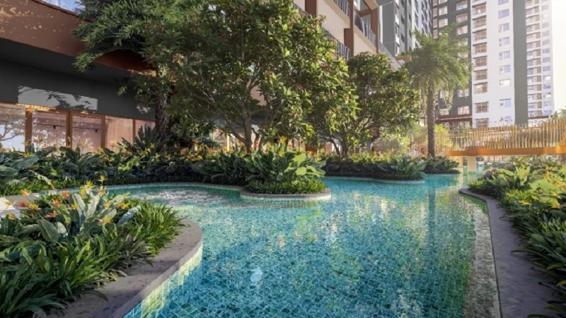 | Thiết kế hồ bơi mang phong cách resort của dự án. Ảnh: The Emerald Garden View |