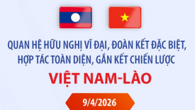 Thắt chặt quan hệ Việt Nam - Lào qua hoạt động đối ngoại nhân dânTối 8/4/2026, tại Hà Nội, Đại sứ quán Lào tại Việt Nam đã tổ chức Lễ đón Tết cổ truyền Bun Pi-may của nhân dân các dân tộc Lào.