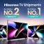 Hisense TV giữ vị trí số 2 toàn cầu trong năm 2024, dẫn đầu thị trường TV 100 inch