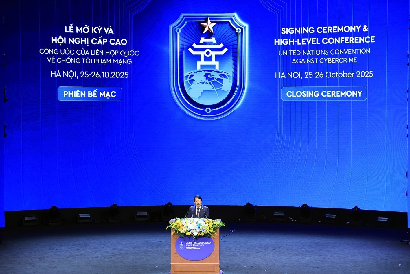 Việt Nam tin tưởng sâu sắc rằng Lễ mở ký Công ước của Liên hợp quốc về chống tội phạm mạng sẽ là cột mốc lịch sử, mở ra kỷ nguyên hợp tác mới trong nỗ lực bảo vệ hòa bình, ổn định và phát triển bền vững của nhân loại. Công ước Hà Nội sẽ thật sự trở thành ngọn hải đăng soi đường cho sự hợp tác toàn cầu về an ninh mạng, đưa thế giới đến mục tiêu "Công nghệ vì con người, số hóa vì hòa bình".